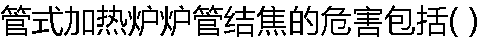 | A: 传热效率降低 B: 炉管温度升高,易损坏 C: 介质流动阻力增大 D: 介质加热均匀性下降 E: 燃料消耗量减少 |
