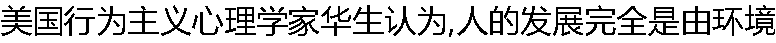 道: “给我一打健康的婴儿,一个由我支配的特殊的环境,让我在这个环境里养育他们,我可担保, 任意选择一个, 不论他父母的才干, 倾向,爱好如何,他父母的职业及种族如何, 我都可以按照我的意愿把他们训练成为任何一种人物——医生,律师,艺术家,大商人,甚至乞丐或强盗。 ”这是( ? ?)。 |