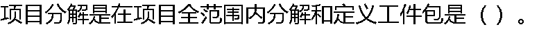 | A:工作分解结构图中工作包应是相对独立的、内容单一的并易于进行核算检 查的任务 B:工作分解结构是制定项目计划的首要工作 C:工作分解结构的层数越多越好 D:工作分解结构是制定进度等的基础 |