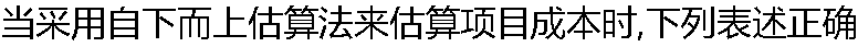 | A:下层人员会夸大自己负责活动的预算 B:自下而上估算法估算出来的成本通常在具体任务方面更为精确一些 C:高层管理人员会按照一定的比例削减下层人员所做的预算 D:自下而上估算法是一种参与管理型的估算方法 |