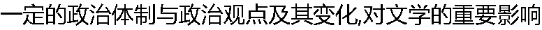 | A:处于社会变革时期的政治以及激烈的阶级斗争,影响文学的方向和性质 B:统治阶级的政策制度以及个人好恶,影响文学的内容与风格 C:处于社会变革时期的政治以及激烈的阶级斗争,影响文学的繁荣或萧条 |