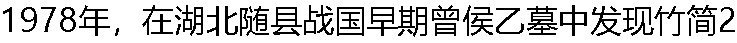 40枚,计1600字,详细记录丧仪所用车马兵甲情况,被称为随县古简。这是目前发现的时代最早的竹简