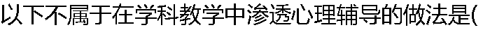 | A:在教学目标中强化心理素质的内容 B:在心理辅导课上对学生的认知、情感和行为进行影响 C:在课堂教学中贯彻心理辅导的原则 D:挖掘各科教学中蕴含的心理辅导的内容和素材 |