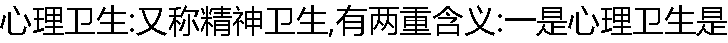 人的心理健康状态;另一重含义是增进人的心理健康,以维护心理健康为目标和内容的一种工作,又称“心理辅导”。 |