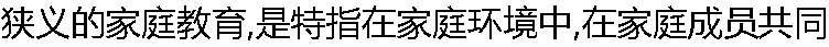 的生活活动中,由家庭中的年长者对未成年人所实施的影响和教育。相比于广义的家庭教育,狭义的家庭教育的有意性要强一些,目的也更加明确一些。( ) |