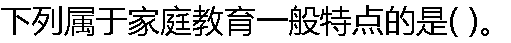 | A:家庭教育的普遍性和广泛性 B:家庭教育内容的丰富性 C:家庭教育方式方法的随机性和灵活性 D:家庭中教育者与受教育者之间关系的多重性,或者说教育者对受教育者态度的复杂性 |