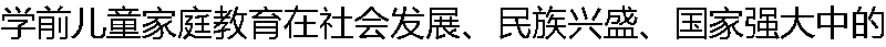 | A:学前儿童家庭教育的效果直接关系到我国社会主义建设人才培养的起步是否坚实 B:良好的学前儿童家庭教育是国家和社会安定的根本保障 C:学前儿童家庭教育是教育的重要组成部分,是实现全面发展教育的基础 D:学前儿童家庭教育是否科学、得当,关系到每个个体能否健康、良好地发展 |
