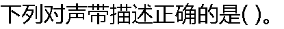 | A:声带有节律地被气息冲开与闭合,形成振动,产生声波 B:振动形式是指声带变厚与变薄 C:音的高低是由声带的振动频率快慢决定的 D:声带具有纵、横、斜三向肌肉纤维走向的特殊结构 |