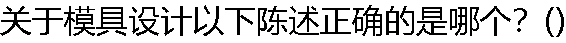 | A:可以对一个零件在纵、横两个方向设置不同的收缩率值 B:可以在模具模块中建立拔模特征 C:RO/E的模具设计只提供半圆型的流道建立方式 D:侧面影像曲线产生在零件的最大投影轮廓面上 |