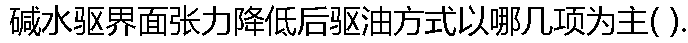 | A:携带作用 B:捕集作用 C:降低油水界面张力 D:改变岩石润湿性 E:乳化作用 |