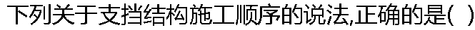 | A: 先开挖后支护 B: 支护与开挖同步进行 C: 先支护后开挖 D: 任意顺序均可 |