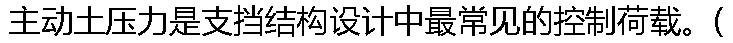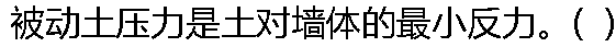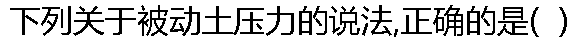 | A: 被动土压力小于主动土压力 B: 被动土压力是支挡结构设计的控制荷载 C: 被动土压力是土对墙体的最大抵抗力 D: 被动土压力与墙体移动方向无关 |