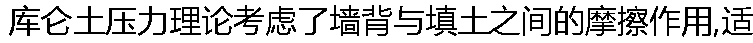 | A: 假设墙背光滑垂直 B: 假设填土表面水平 C: 适用于任意墙背形式 D: 计算结果偏于安全 E: 考虑墙背与填土的摩擦作用 |