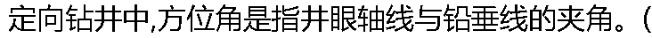 | A: 井眼轴线与铅垂线的夹角 B: 井眼轴线与水平线的夹角 C: 井眼方位与正北的夹角 D: 井眼深度与水平距离的比值 |