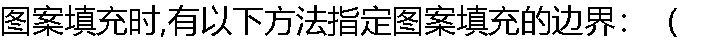 | A:指定对象封闭的区域中的点 B:选择封闭区域的对象 C:将填充图案从工具选项板或设计中心拖动到封闭区域 D:以上都可以用 |