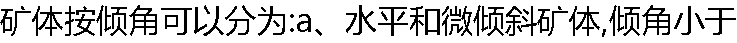 5;b、缓倾斜矿床,倾角为40~5;c、倾斜矿体,倾角为55~40;d、急倾斜矿体,倾角大于55。 |