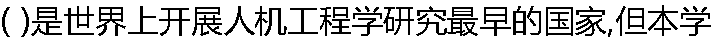 | ( )是世界上开展人机工程学研究最早的国家,但本学科的奠基性工作实际上是在美国完成的。? |