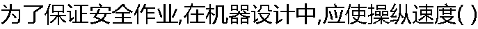 | 为了保证安全作业,在机器设计中,应使操纵速度(?)人的反应速度。? |