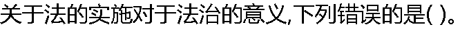 | A:法的实施是实现法的作用和目的的前提条件 B:法的实施是实现权利和义务的必要环节 C:法的实施是建立法治国家的重要内容和条件 D:法的实施只涉及执法和司法,对立法不具有补充的作用 |