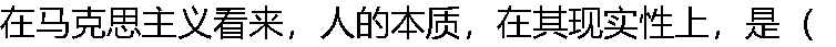 | A:有生命的自然存在 B:一切社会关系的总和 C:饥食渴饮、性欲生殖 D:单个人所固有的抽象物 |