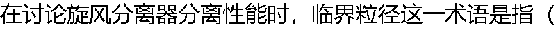 | A:旋风分离器效率最高时的旋风分离器的直径 B:旋风分离器允许的最小直径 C:旋风分离器能够全部分离出来的最小颗粒的直径 D:能保持滞流流型时的最大颗粒直径 |