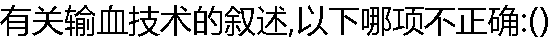 | A:常规采用中心静脉穿刺置管输血 B:急性大量失血,血压极低,而静脉输血困难者可经动脉输血 C:血液输入病人体内前要过滤 D:输血速度因病情而定 E:输血后血袋应保留2小时左右以备化验检查用 |