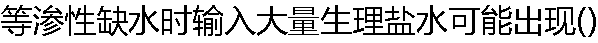 | A:等渗性缺水 B:高渗性缺水 C:水中毒 D:低渗性缺水 E:高钾血症 |