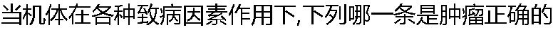 | A:组织细胞增生所形成的肿块 B:组织发育异常 C:器官发育不全 D:组织细胞增生与异常分化所形成的新生物 E:器官组织细胞增生形成的新生物 |