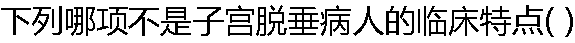 | A:自觉外阴有块物脱出 B:有程度不等的腰骶部酸痛和下坠感 C:有不同程度的月经失调表现 D:严重者可伴有阴道前后壁膨出 E:可发生压力性尿失禁 |