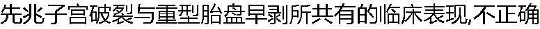 | A:伴有头盆不称 B: 剧烈腹痛 C: 子宫呈板状硬不放松 D: 均有外伤史 E: 都伴有多量阴道出血 |