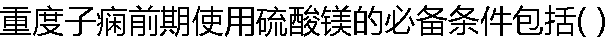 | A:膝腱反射存在 B:呼吸≥16次/分 C:尿量≥17ml/h或≥400ml/24h D:备有10%葡萄糖酸钙 E:心率 lt;130次/分 |
