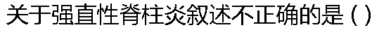 | A: 是一种致病机理不明的慢性炎症性脊柱关节病 B: 中要侵犯中轴关节,不累及内脏 C: 起病大多缓慢而隐匿,男性多见 D: 临床治疗尚无要治手段 E: 康复治疗包括健康教育、物理治疗、运动治疗及传统康复治疗等。 |