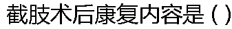 | A: 体操训练 B: 全身柔软体操 C: 运动疗法 D:渐进抗阻练习 E:承重耐力训练 |