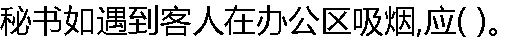 | A:劝说客人到办公楼外去吸烟 B:批评客人的行为,提醒他注意公共道德 C:引领其到吸烟区 D:为其准备烟缸 |