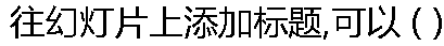 | A: 直接在幻灯片上输入即可 B: 必须添加文本框后在文本框中输入 C: 选择“插入”菜单上的“文字”项 D: 单击右键选择“添加” |