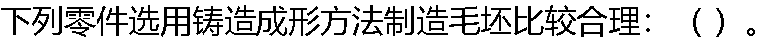 | A:大批量产生的重载中、小型齿轮 B:形状复杂要求减振的大型机座 C:形状复杂的铝合金构件 D:玻璃杯状的低碳钢零件 |
